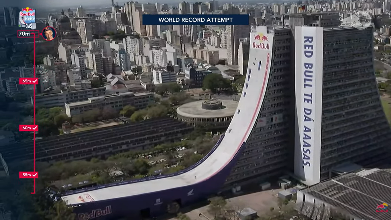 A cada descida, Mineirinho aumentava progressivamente a altura do drop, até alcançar o feito inédito: bater o recorde mundial ao descer a maior mega rampa já construída.