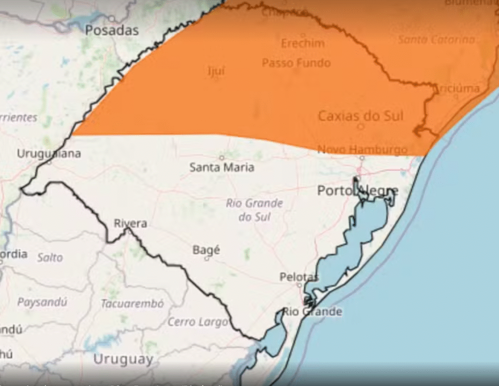 O Rio Grande do Sul deve enfrentar um período de instabilidade climática a partir desta segunda-feira (29), com previsão de temporais severos em diferentes regiões do estado. O Instituto Nacional de Meteorologia (Inmet) emitiu um alerta de nível laranja — que indica perigo — para chuvas intensas acompanhadas de granizo e rajadas de vento que podem chegar a 100 quilômetros por hora.
